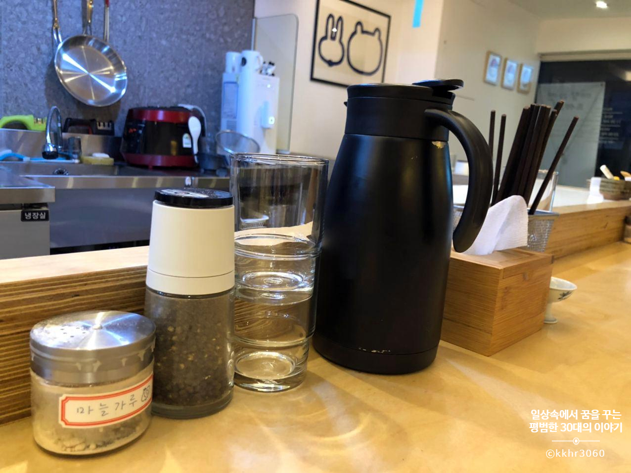 테이블 위에 마늘가루와 후추가 놓여있어서 마늘가루를 뿌려먹어봤는데 요놈이 참 요물!!! 나도 집에 장만해놓고 사용해야겠다.