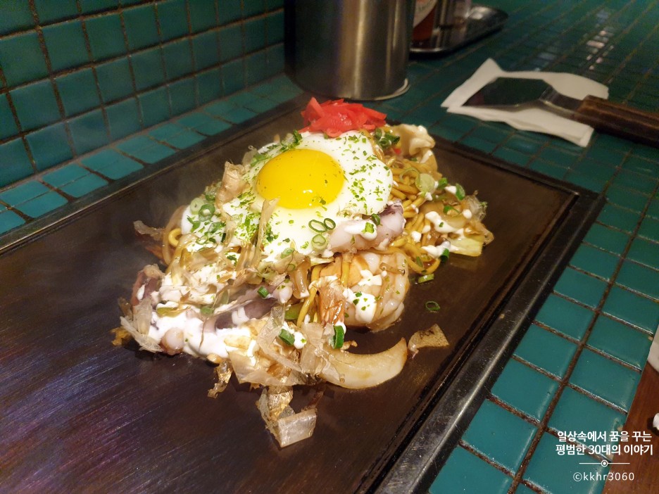 요즘 코로나로 매일 식사를 집에서 해먹다가 오늘만큼 그동안 요리하느라 수고한 나를 위해 짝꿍이 맛있는 저녁 식사를 사주고 싶다고 해서 오랜만에 밖에서 사 먹었다. 사준다는데 거절할 이유가 없으니 냉큼 고맙다고 하고는 뭘 먹을까 고민하며 폭풍 검색. 발을 다쳐 발 보호대를 하며 회사를 다니고 있는 짝꿍을 위해 (나중에 집에 가기 편하게) 최대한 신사역 근처에 있는 식당으로 골랐다. 그렇게 해서 찾게 된 오코노미야키와 야끼소바가 메인 메뉴인 우와!