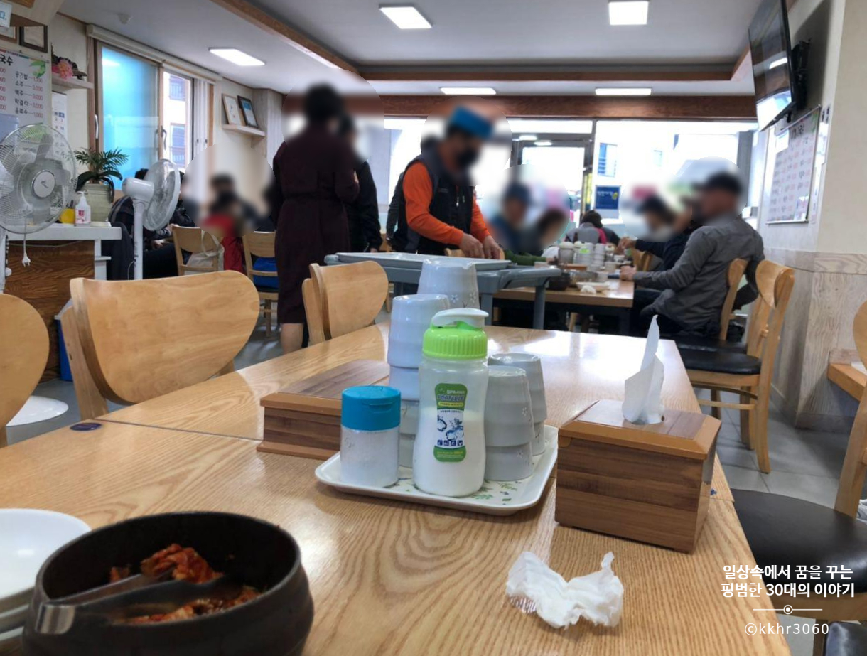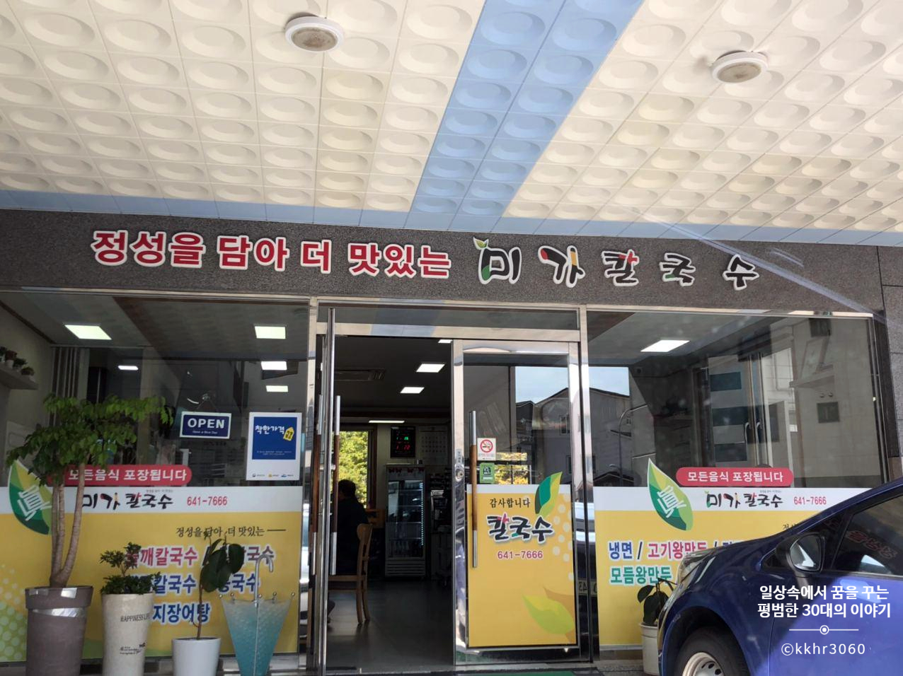 짝꿍에게 점심으로 뭘 먹고 싶냐고 물어보니 칼국수가 먹고 싶단다. 그래서 검색을 해보니 숙소에서 가까운 미가칼국수가 제일 먼저 나오길래 고민 없이 바로 고고! 점심시간이라 그런지 손님이 꽤 많다. 위치가 관광객이 오기에는 살짝 애매한 곳에 위치해있어 아마 손님 대부분은 현지인일 것이다.