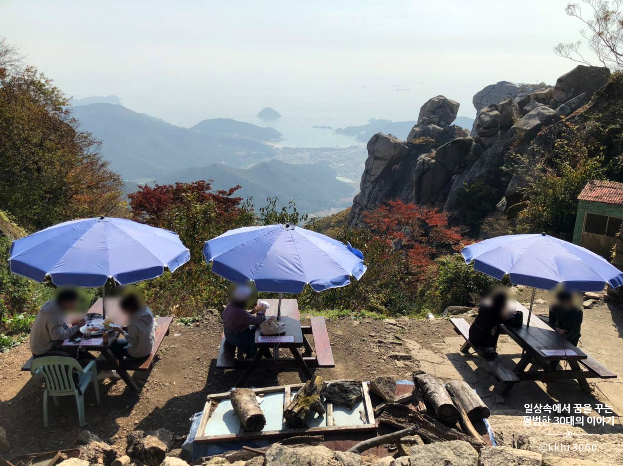 금산산장에 도착해보니 이곳이 왜 그렇게 유명한지 바로 알겠더라. 금산산장 앞으로 쭉 펼쳐진 풍경이 말로 형용할 수없이 멋있었기 때문이다. 여기에서라면 뭘 먹어도 맛있게 느껴질 것 같았다. 평일임에도 사람이 꽤 많았다. 물론 주말엔 사람이 너무 많아 줄을 서야 한다고 하니 기다림 없이 풍경 좋은 자리에 앉은 우리는 평일 여행의 특권을 제대로 누렸다. 젊은 사람들이 인스타그램을 보고 많이 오는 것 같았다.