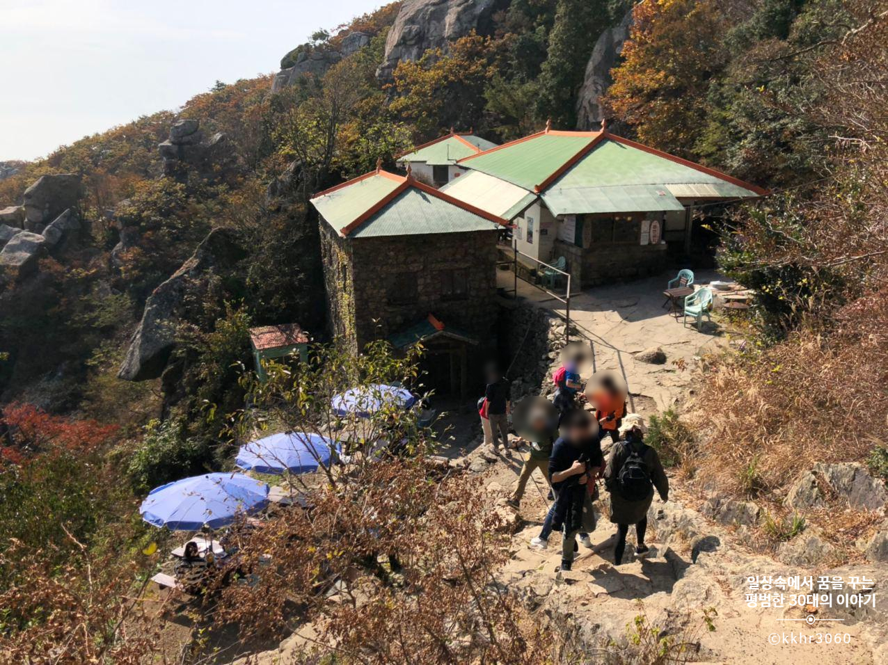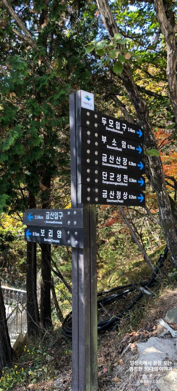 우리는 평일 점심때쯤 보리암에 가서인지 주차장에 차가 많지 않았는데 주말에는 방문객으로 늘 북적북적하단다. 매표소에서 보리암까지 꽤 걸어야 하는데 금산 산장은 거기서 0.3km를 더 가야 한다. 길이 험하지는 않지만 등산길이므로 운동화 신고 가는 것을 추천한다.