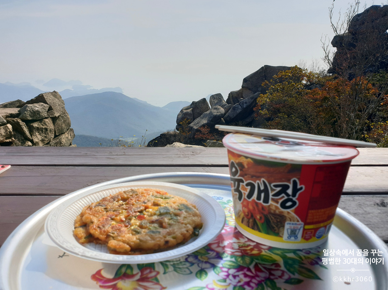 우리는 컵라면 2개(1개 3000원), 맥반석 구운 계란 2개(1개 1000원), 해물파전 1개(10000원) 그리고 사이다 1개(2000원)를 주문했다. 이곳에서 보는 풍경만으로도 만족스러웠으므로 맛에 대한 기대는 크게 없었다. 컵라면은 수급 상황에 따라 판매하는 종류가 달라지는 듯했고 해물파전은 할머님께서 방 안에서 부치고 계셨다.